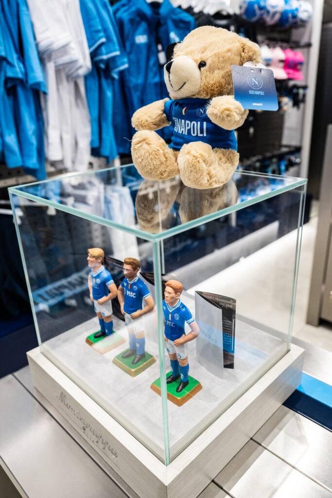 Lo Store di via Calabritto, con il suo ambiente raccolto e curato, contribuisce a definire una presenza ancora più omogenea e riconoscibile del club nel cuore della città. Uno spazio ridefinito per accogliere i tifosi e condividere, ogni giorno, il senso di appartenenza azzurro.