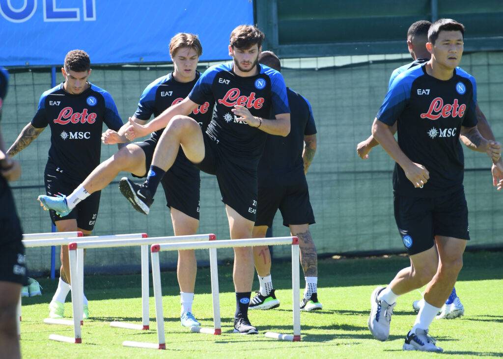 Azzurri al lavoro dopo la vittoria dell’Olimpico ed in vista del match di Champions con il Liverpool. Problemi per Spalletti per il reparto offensivo dove Lozano ed Osimhen sono in forte dubbio per la sfida ai “reds”. Questo il report del Club sull’allenamento odierno: “La squadra dopo una prima fase di attivazione in palestra e in campo si è divisa in due gruppi: chi ha giocato sabato ha svolto lavoro di forza in palestra mentre il resto della squadra ha fatto lavoro di forza in campo e partita a campo ridotto. Demme ha svolto terapie e personalizzato in palestra. Lozano ha svolto lavoro personalizzato. Osimhen ha svolto lavoro personalizzato in seguito a un risentimento accusato nel finale di Lazio-Napoli”.