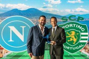 Napoli-Sporting CP, al pranzo UEFA donata la prima opera di Antonio Nocera